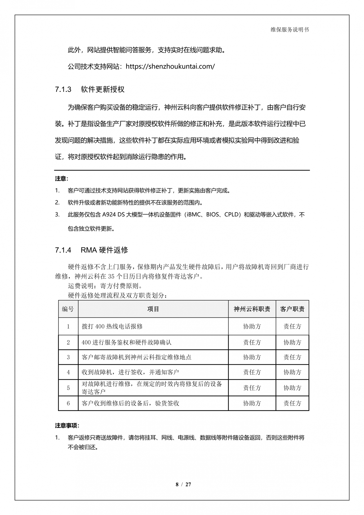 巅峰国际A924 问学大模型一体机维保服务说明书_V1.0